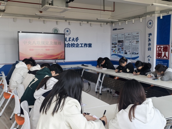 在专题研讨环节,支部党员结合学生工作实际展开讨论,通过剖析高校领域违反中央八项规定精神的典型案例,教育引导学生党员引以为戒。章记强调,“我们要从身边小事做起,比如规范使用班费、合理布置活动场地,这些都是落实八项规定的具体体现。”