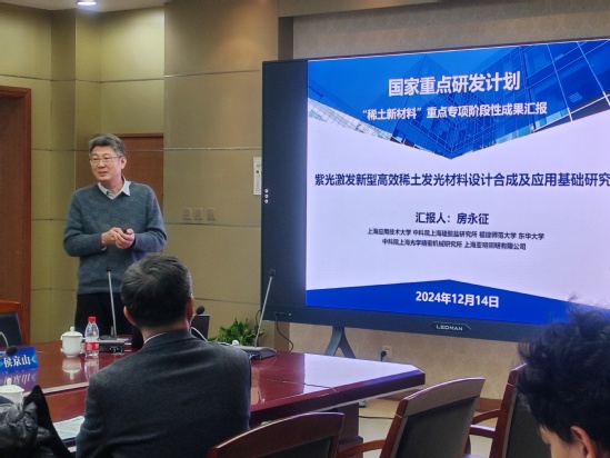 12月14日,由上海应用技术大学牵头实施的国家重点研发计划项目“紫光激发新型高效稀土发光材料设计合成及应用基础研究”2024年度进展研讨会召开。有研稀土新材料股份有限公司总经理刘荣辉教授、中国科学院上海硅酸盐研究所党委书记王东研究员、中国科学院福建物质结构研究所朱浩淼研究员、北京大学孙聆东教授、中国科学技术大学段昌奎教授、中国科学院上海光学精密机械研究所赵全忠研究员、烟台希尔德材料科技有限公司高级工程师豆帆、烟台希尔德材料科技有限公司总经理曾庆云、北京中创京安咨询有限公司高级会计师杨鹏等项目责任专家、专家委员会委员、咨询专家、财务专家等应邀参加会议。项目负责人及首席科学家、我校材料科学与工程学院院长房永征教授,课题负责人和项目骨干成员等参会。我校科学技术研究院院长杜永教授和项目责任专家有研稀土新材料股份有限公司总经理刘荣辉主持会议。