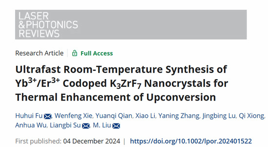近日,我校材料科学与工程学院刘敏副教授与中科院上海硅酸盐研究所苏良碧研究员合作,在氟化物的超快室温制备和热增强上转换发光方面取得进展,于光学领域权威期刊Laser & Photonics Reviews(材料科学1区Top期刊,IF=9.8)发表题为“Ultrafast Room-Temperature Synthesis of Yb3+/Er3+ codoped K3ZrF7 Nanocrystals for Thermal Enhancement of Upconversion”的研究论文。论文第一单位为上海应用技术大学,付虎辉博士为论文第一作者,上应大刘敏副教授、中科院上海硅酸盐苏良碧研究员和付虎辉博士为共同通讯作者。