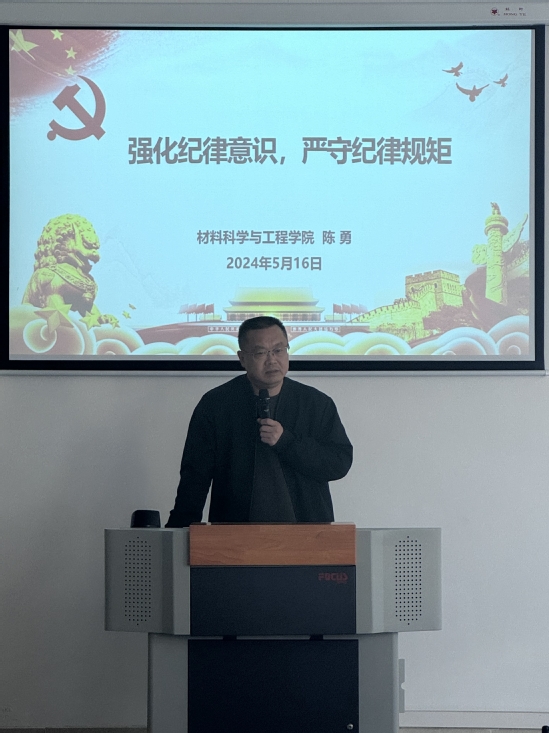为深入学习贯彻习近平总书记关于党纪学习教育重要讲话重要指示精神,按照材料学院党纪学习教育工作统一安排部署,5月16日下午,学院党委书记陈勇以“强化纪律意识,严守纪律规矩”为题,为全体学生预备党员讲授党纪学习教育纪律党课。