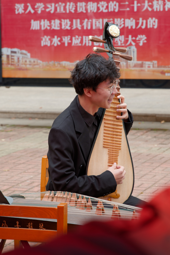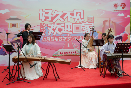 4月20号,在上海应用技术大学七十周年校庆嘉年华活动上,材料学院漣樂民乐社在大学生活动中心门口举办“贺七十周年校庆,共享音乐盛宴”主题活动,用民族音乐迎接远道而来的校友。