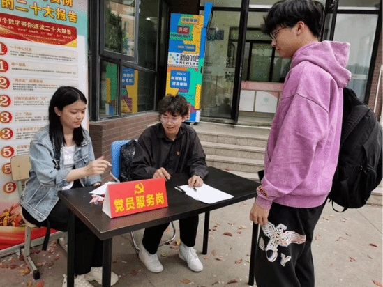 为深入学习贯彻党的二十大精神,促进党员在工作岗位上充分发挥先锋模范作用,进一步加强思想武装,紧密联系工作实际,树立“一个党员就是一面旗帜”,切实提高党员整体素质,贯彻“我为群众做实事”理念,充分发挥党员模范和带动作用。材料科学与工程学院本科生第二党支部4月底于22号、23号、24号三楼中央设党员服务岗,向广大学生提供咨询平台,切实解决学生学习、生活等方面所存在的问题。