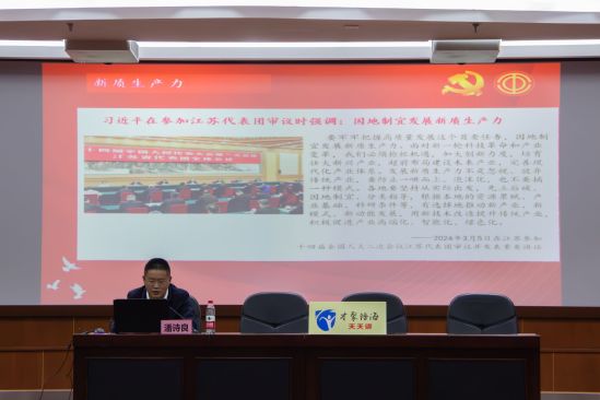 在讲座中,潘诗良带领学生对新质生产力的深刻内涵进行了探讨,提出了一些加快提升生产力的措施,讲解了新质生产力在高质量发展中的作用以及新质生产力与工匠精神的联系,并祝愿在做学子铭记工匠精神,努力成为新时代的工匠,用双手和智慧创造更多的美好与奇迹!