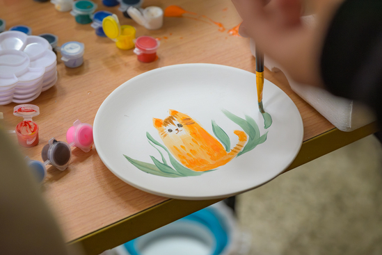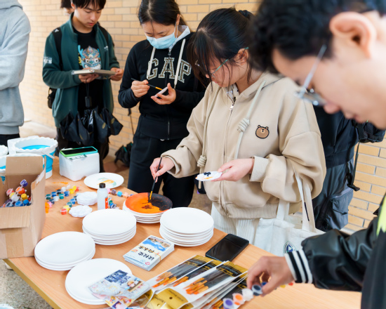 在趣味体验区,手绘陶瓷素胚上色活动深受同学们的欢迎,通过陶瓷素胚上色,体验着不同于传统平面绘画的乐趣,看着一件件作品通过自己的手创作出来,同学们的成就感不由而生,同时活动也在用新型的绘画向同学们传递应用创新的精神。