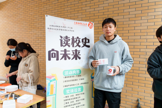 2024年4月12日,由上海应用技术大学材料科学与工程学院“乐陶”陶艺社、海湾听涛读书社、拙金社联合举办的“读校史,向未来”校园文化艺术节活动在二教中庭成功举行。本次活动以“读校史,向未来”为主题,寄托着同学们对学校深深的眷恋之情以及对学校未来发展的无限期望。通过“读校史、答题目、写祝福、做文创”的形式,引领同学们重温学校七十年来的发展历程,感悟学校深厚的历史积淀和文化内涵,传承光荣传统,弘扬上应精神。