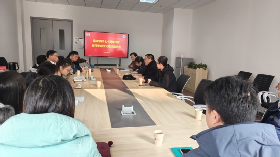 习近平总书记在文化传承发展座谈会上指出:“党的十八大以来,党中央在领导党和人民推进治国理政的实践中,把文化建设摆在全局工作的重要位置……”,为了响应党中央的号召,同时为了喜迎2024年学校七十周年校庆,全面提升材料学院搬迁后的学院文化建设,更好的展现学院文化形象,增强学院广大师生的凝聚力和校友的感召力,讲好学院的故事,打造学院文化名片,材料科学与工程学院于1月11日上午在七科B416会议室召开学院文化建设推进会,学院领导班子成员,徐家跃教授、各系部主任、实验中心主任、院办主任、党委委员及工会委员出席,学院党委书记陈勇主持会议。