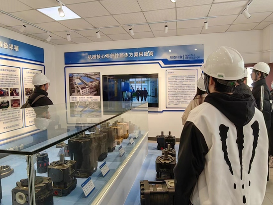 企业技术研发工作人员向团队展示各式各样生产成果,包括机器零部件、机械设备、电子元件等,所涉及领域覆盖航空航天、船舶制造业、汽车制造业等。