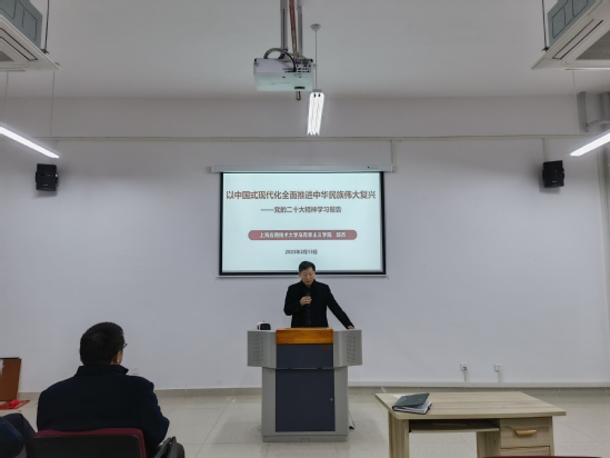 为深入学习宣传贯彻党的二十大精神,2月13日,材料学院组织开展党的二十大精神集中学习活动,特别邀请马克思主义学院常务副院长邱杰做题为《以中国式现代化全面推进中华民族伟大复兴——党的二十大精神学习报告》的专题报告,材料学院党委书记陈勇,院长杜永,副书记、副院长李婉以及百余名师生党员参加学习。