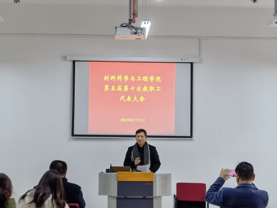 2022年1月13日,材料学院在第七学科楼B329召开第五届第七次教代会暨先进党支部和优秀党员表彰大会,学院领导班子成员、教职工代表、党员代表共同参加。