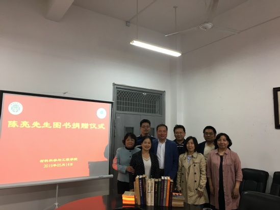 5月14日,材料学院举办宝山区国资委下属企业监事会主席陈亮先生图书捐赠仪式。材料学院党总支书记田怀香教授、金属系主任徐春教授热情接待陈亮先生,并对捐赠书籍的热心行动表示感谢!材料学院相关专业教师也参加了捐赠仪式。此次,陈先生向材料学院捐赠28本金属专业书籍,这些都是他在马钢、宝钢工作期间的珍贵专业资料和书籍。